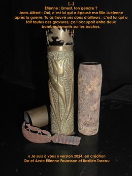 Sur la semaine du 29 octobre au 4 novembre 2024, Étienne et Bastien se sont retrouvés sur une résidence pour mettre à jour la pièce « je suis à vous » : mise en scène et scénographie up-gradées, texte et décors adaptés... C'est une nouvelle version de la pièce de théâtre qui prend vie cette semaine ! Étienne jouera le rôle d’Étienne, découvrant les lettres dans le grenier, et Bastien donnera vie au personnage de Jean-Alfred Poulas.